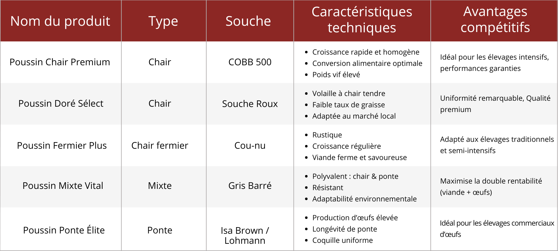 Poussin à chair tendre, bien adapté au marché local et très apprécié.